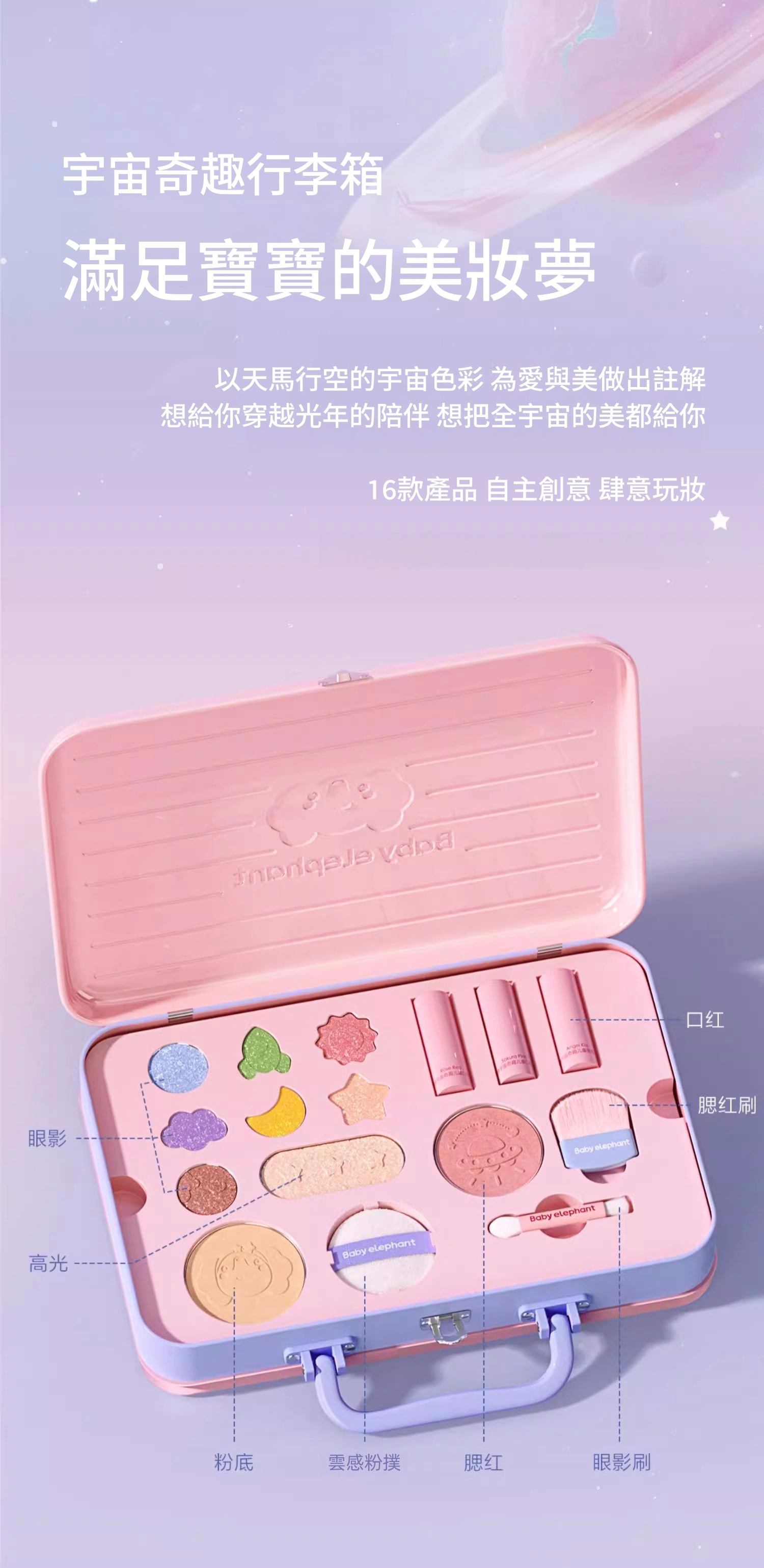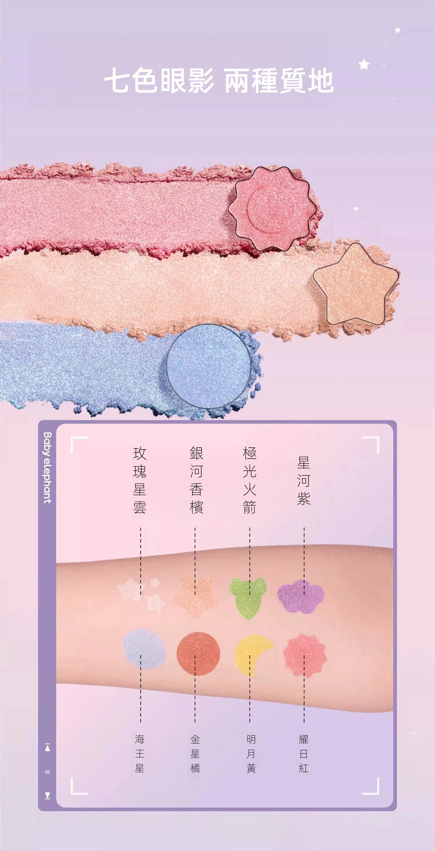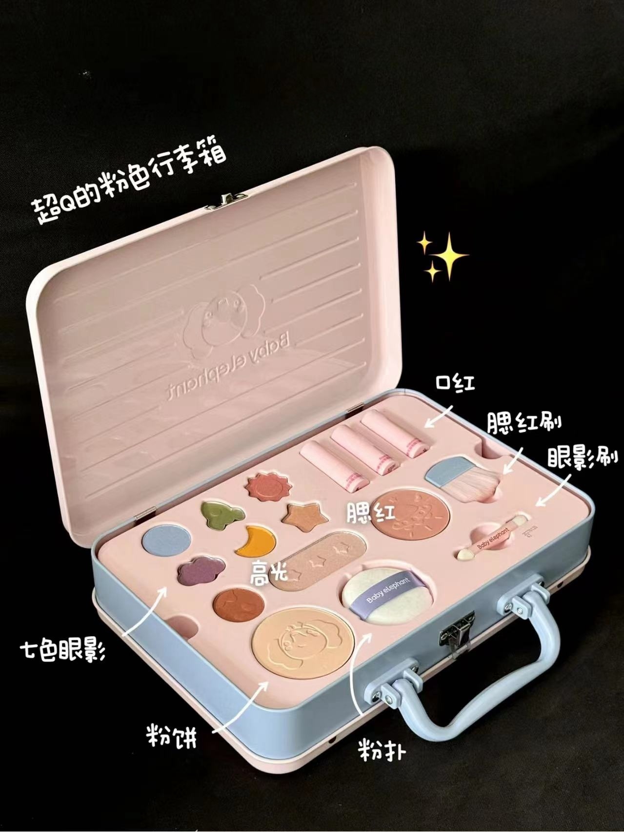 眼影*7/ 高光*1/ 粉餅*1/ 腮紅*1/ 口紅*2/ 唇膏*1 粉撲*1/ 眼影刷*1/ 腮紅刷*1