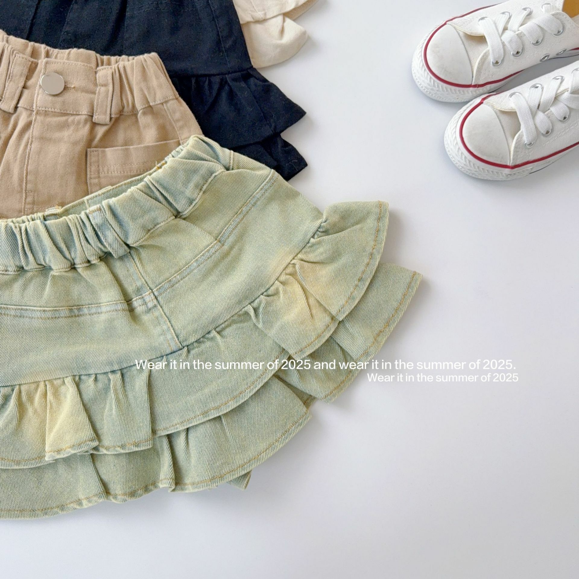 denim ruffle skirt