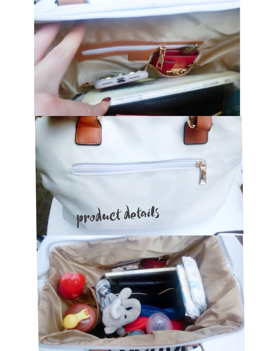 外層有拉鍊袋可收納小物鑰匙濕紙巾等等