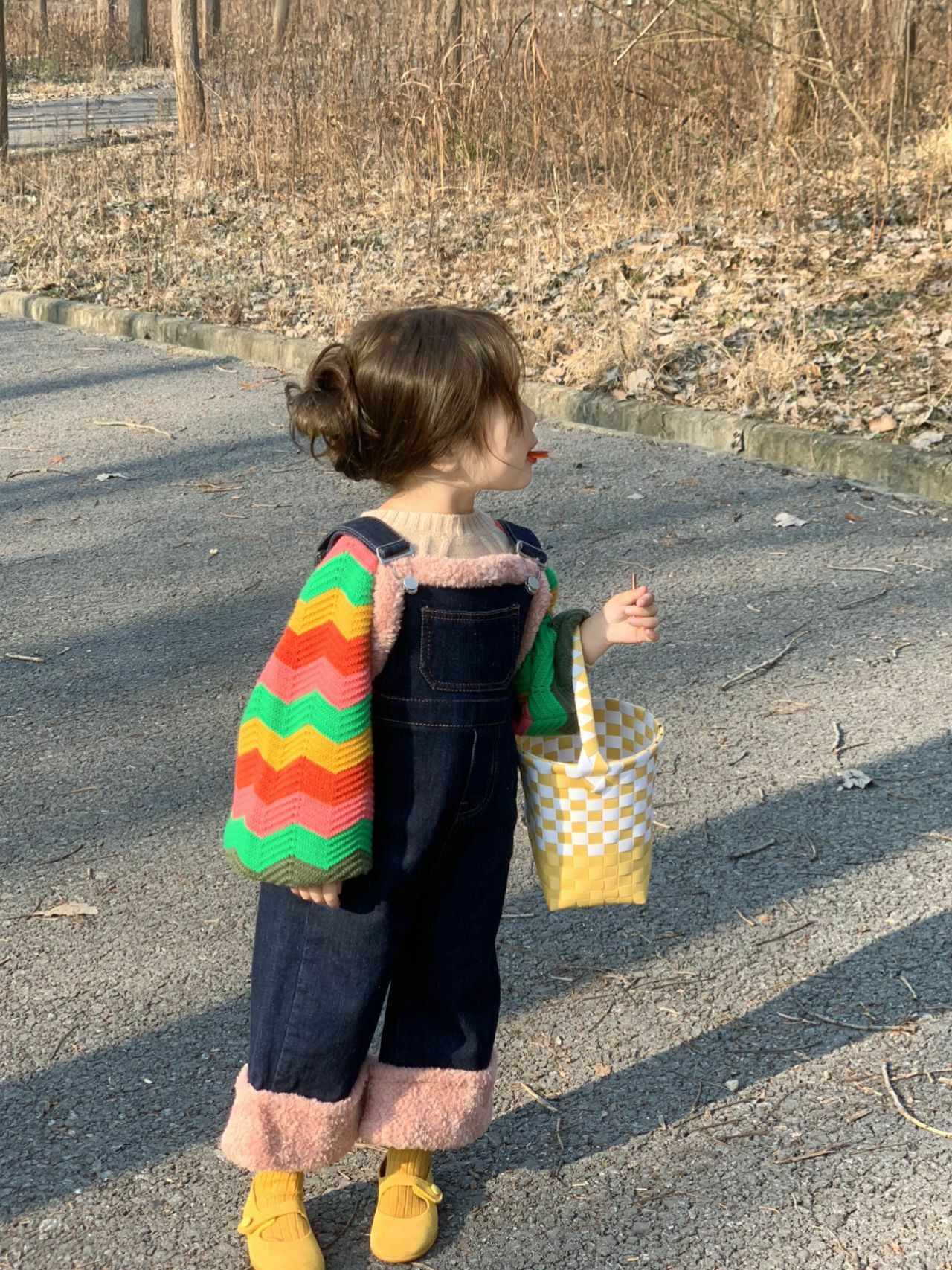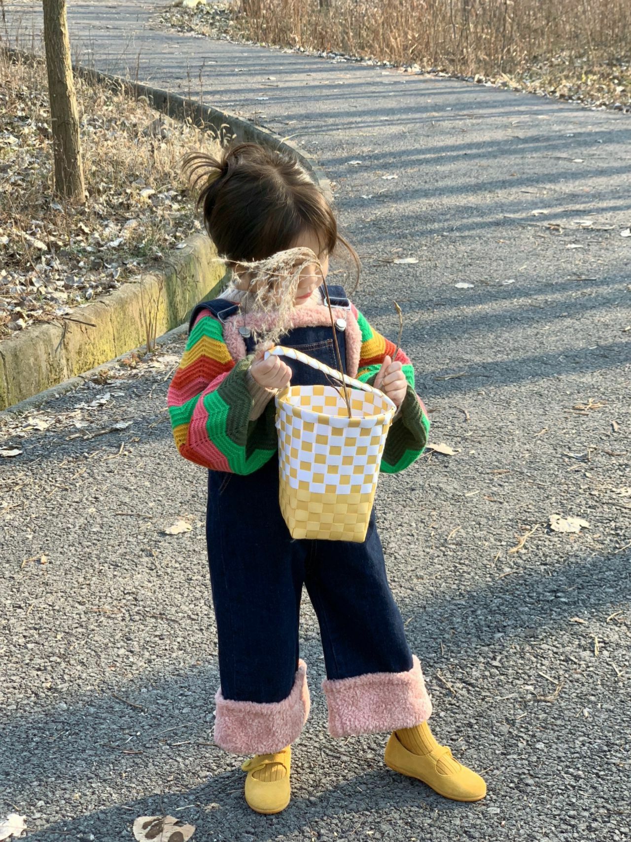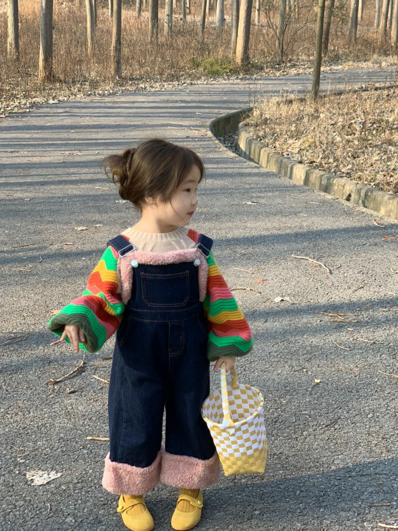 pink fur bib jeans