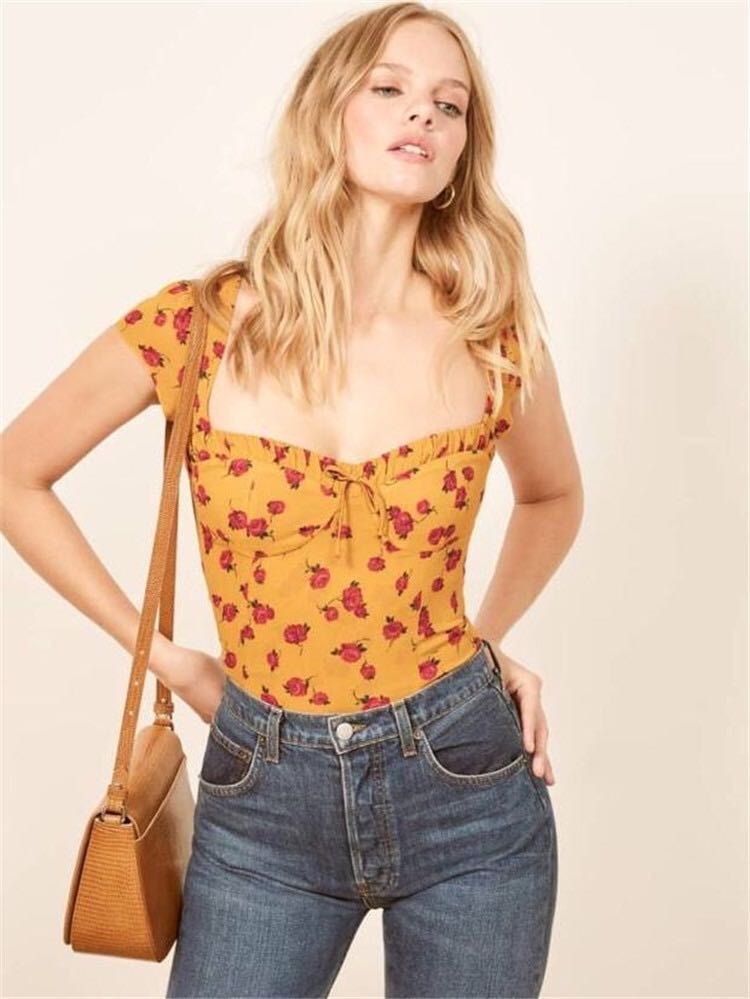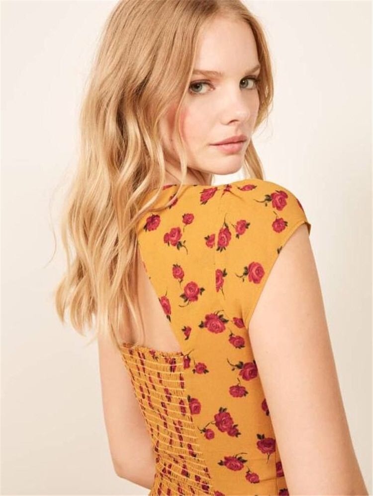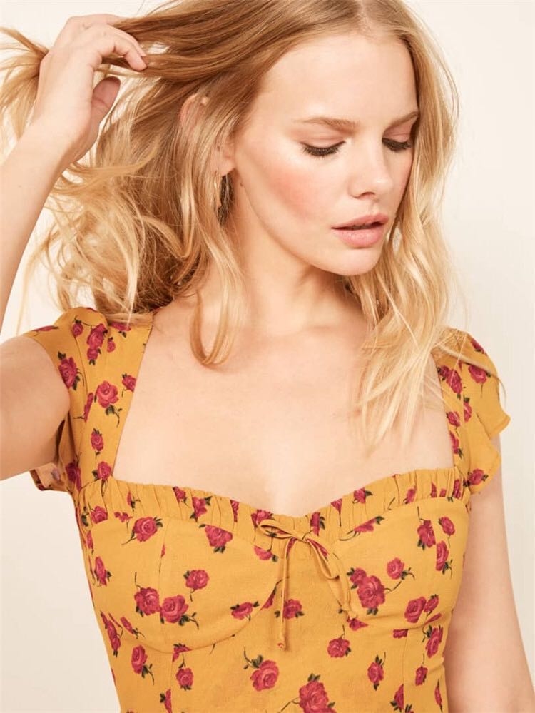 Reformation20 小碎花復古露背上衣
