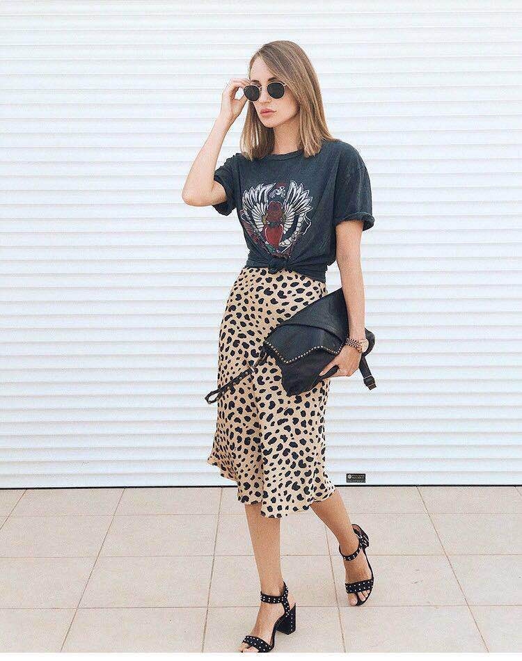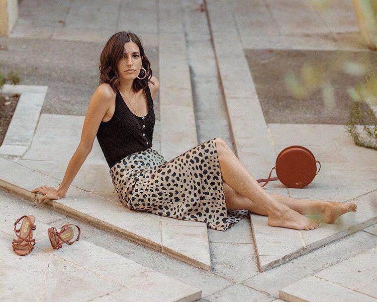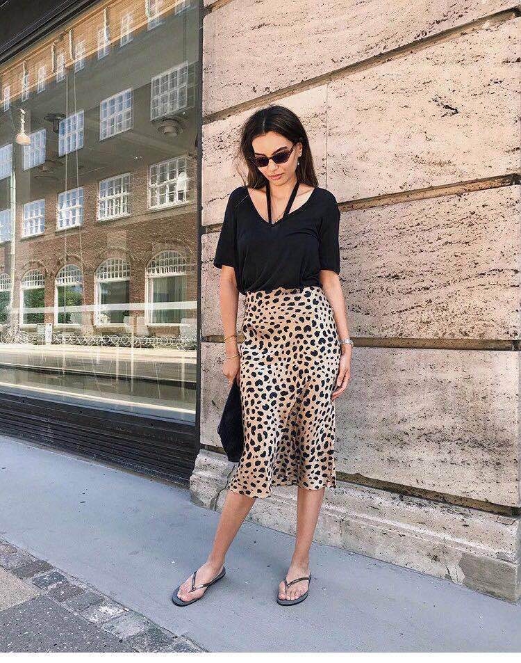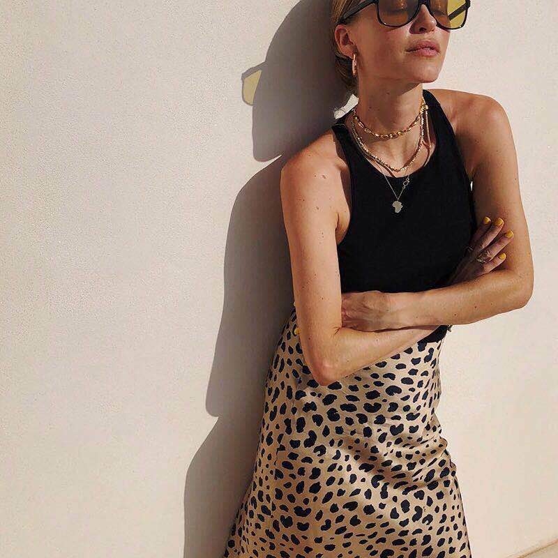 Reformation 真絲包臀豹紋魚尾半身裙