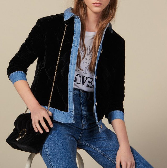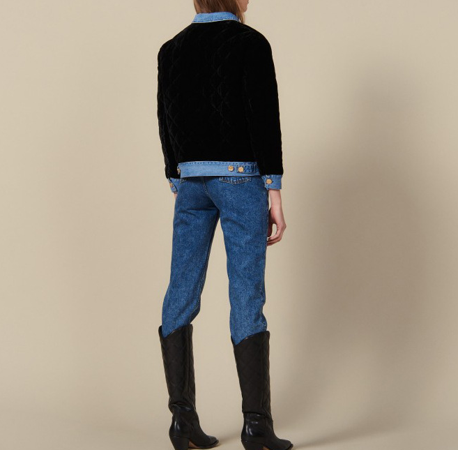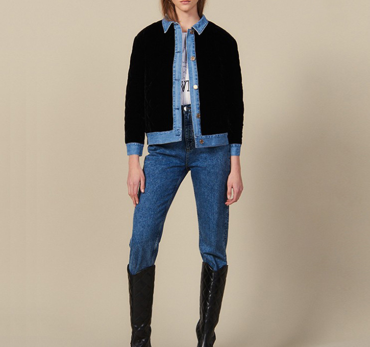 S 19牛仔單排紐拼接材質外套