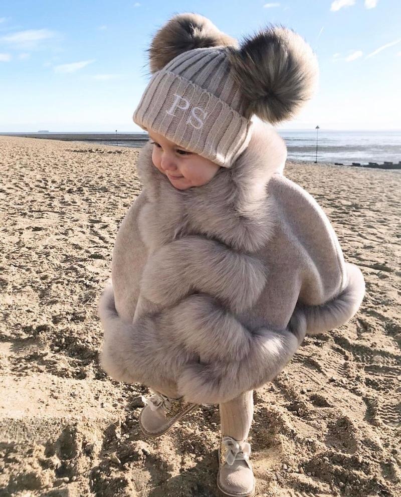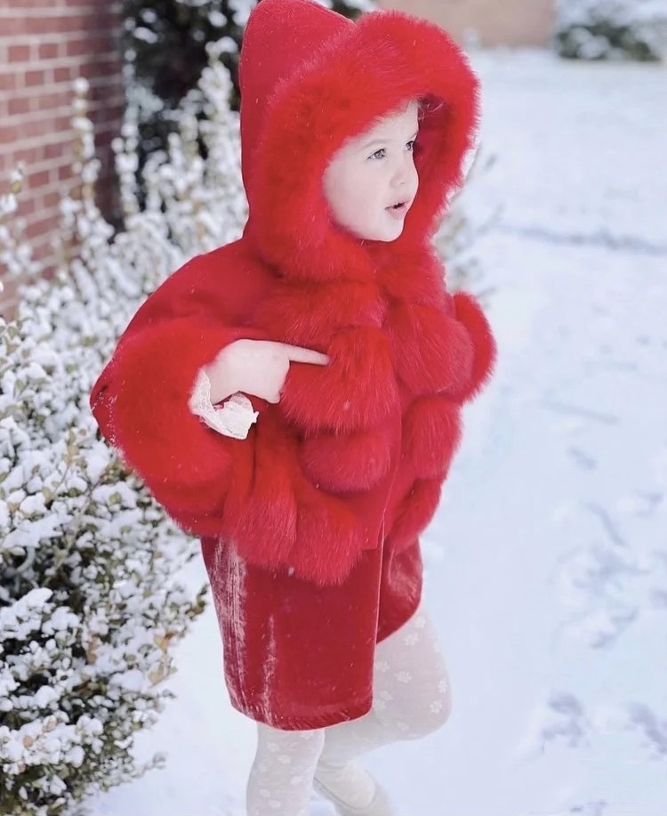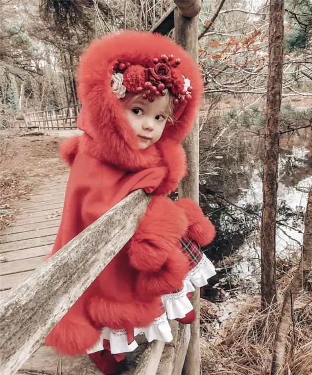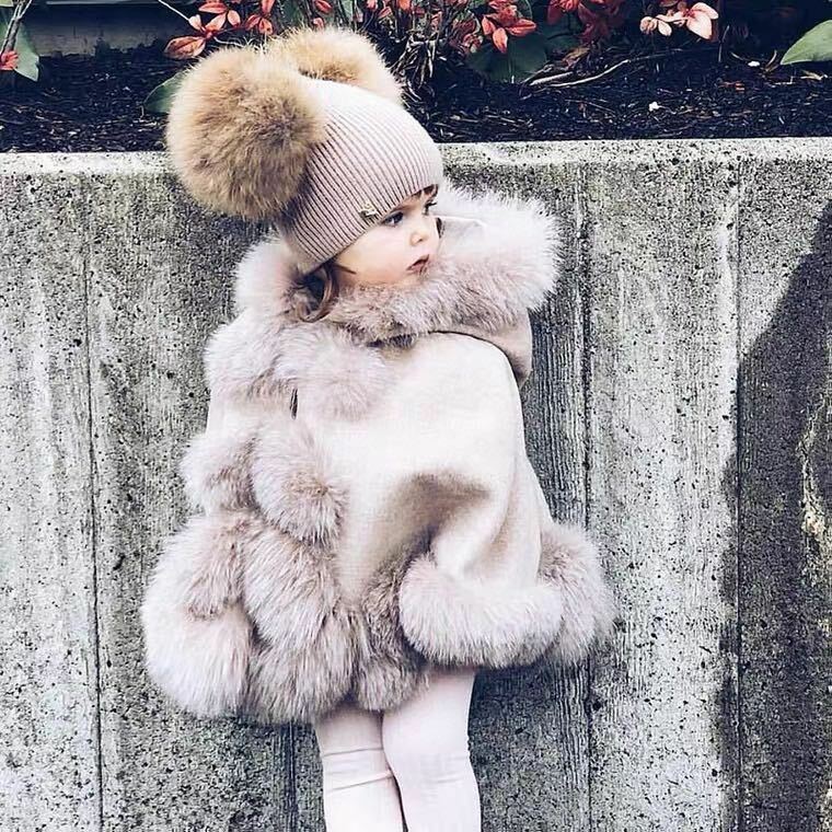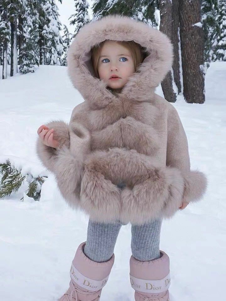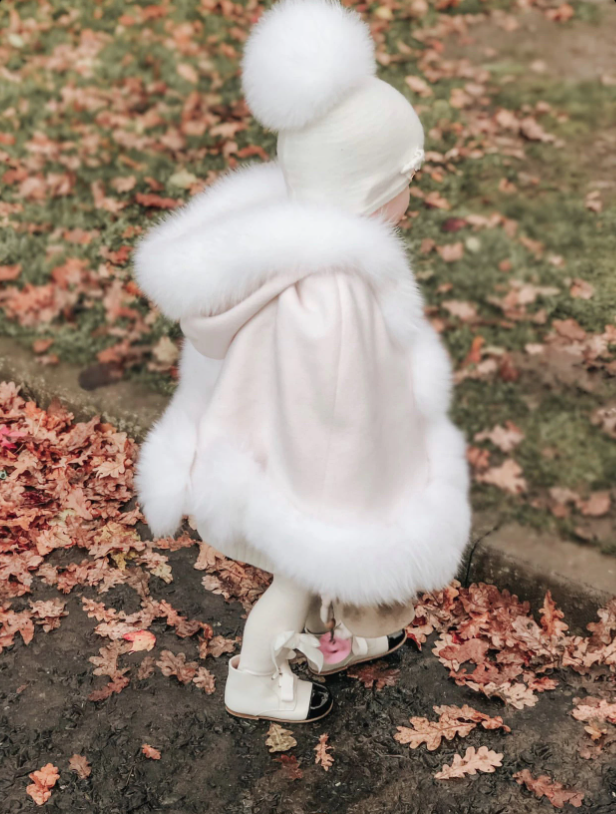 KIDS LUXURIOUS FOX FUR TRIM CAPE.