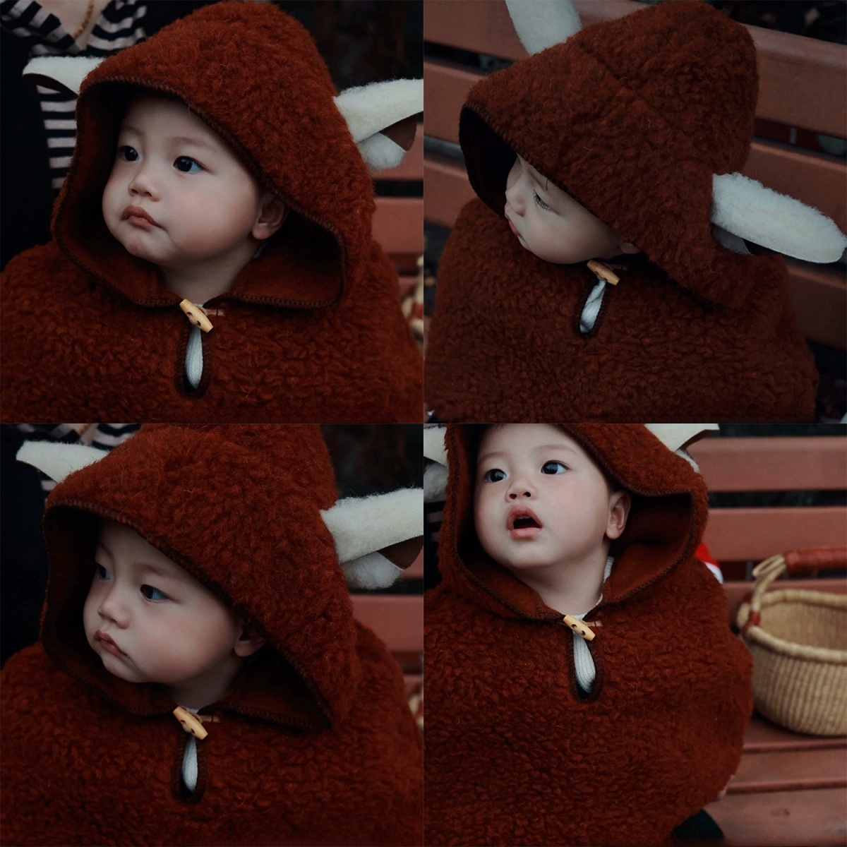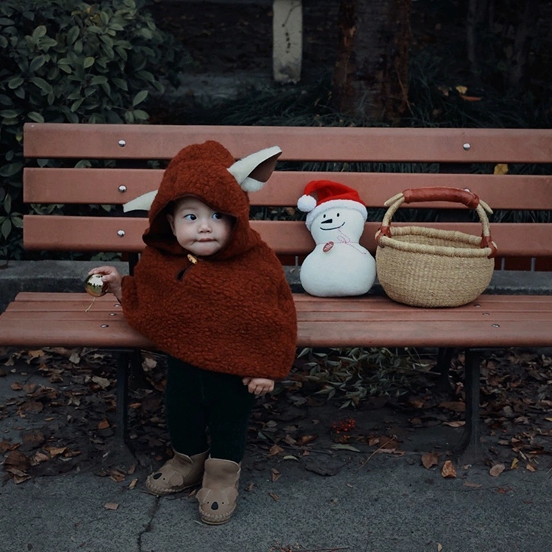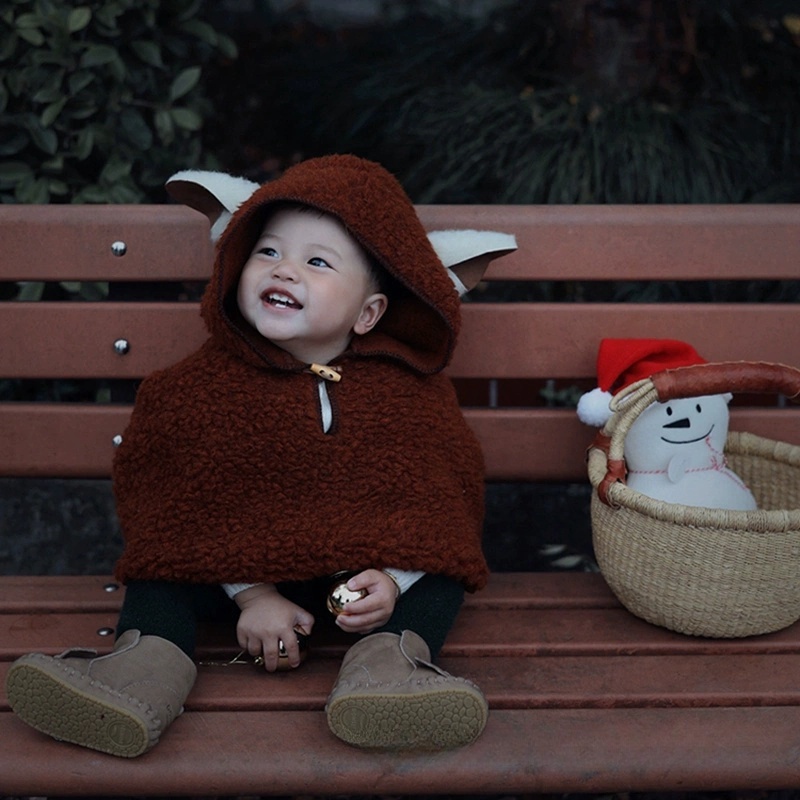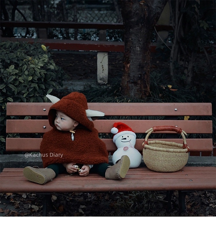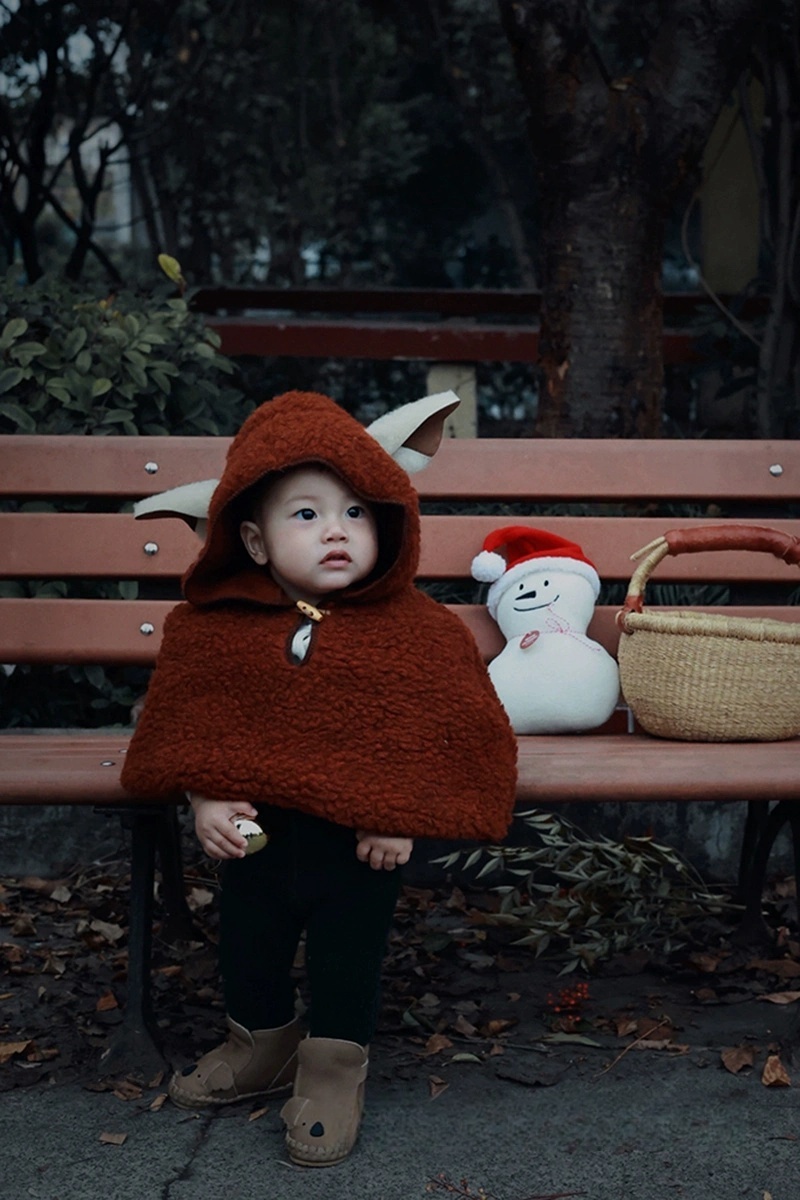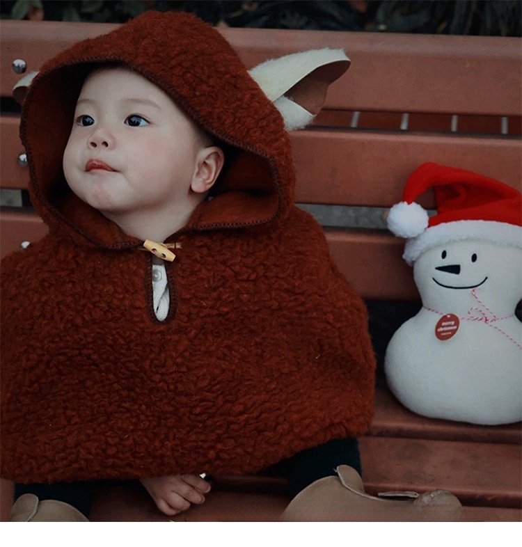 小羊耳朵紅色羊羔絨baby斗篷