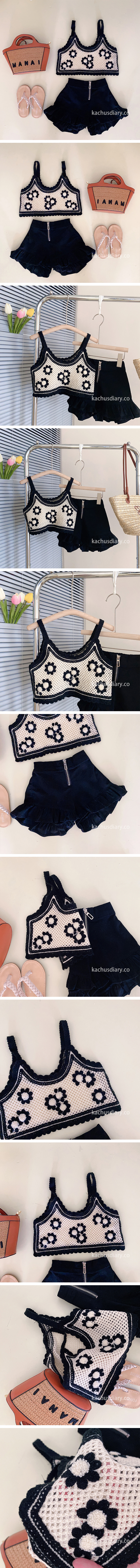 復古針織花套裝