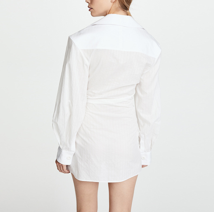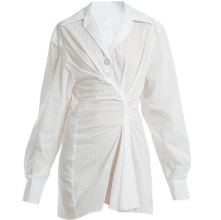 歐美簡潔修身不規則單排扣翻領襯衫裙