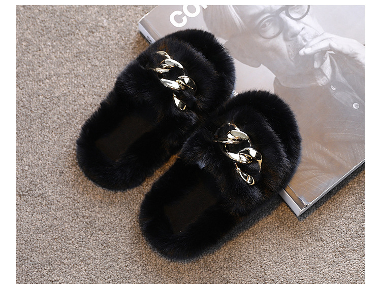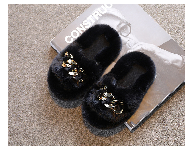 毛毛金屬裝飾拖鞋