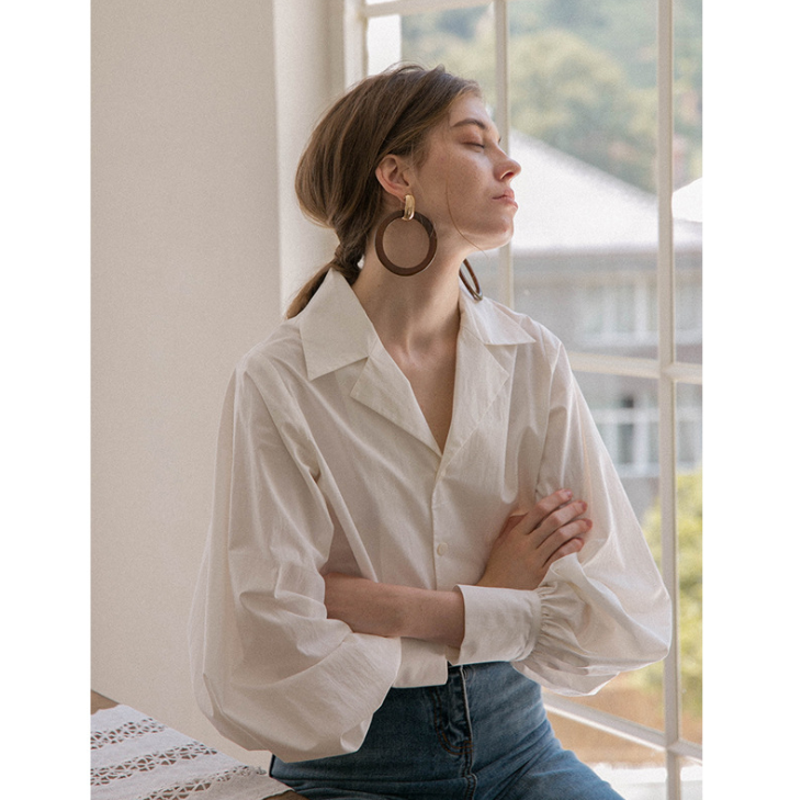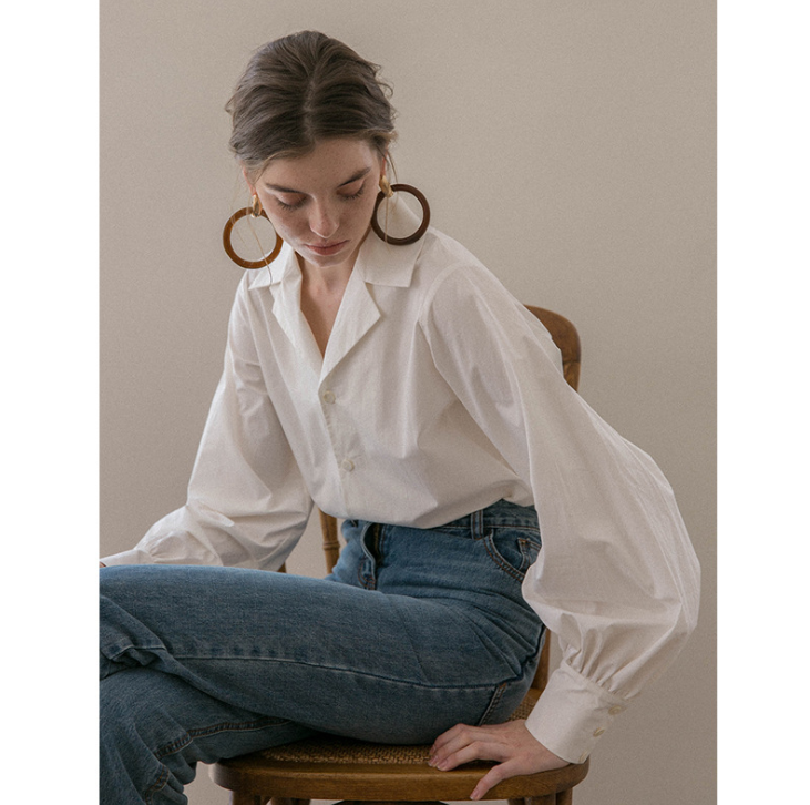 法式複古V領襯衫