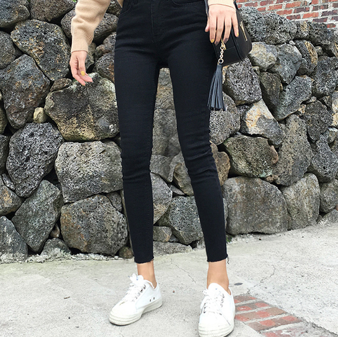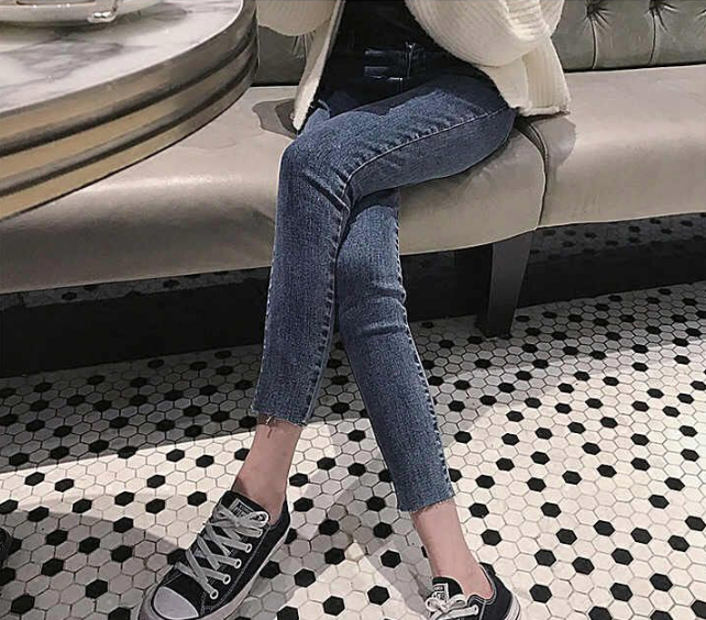 韓版毛邊九分牛仔褲